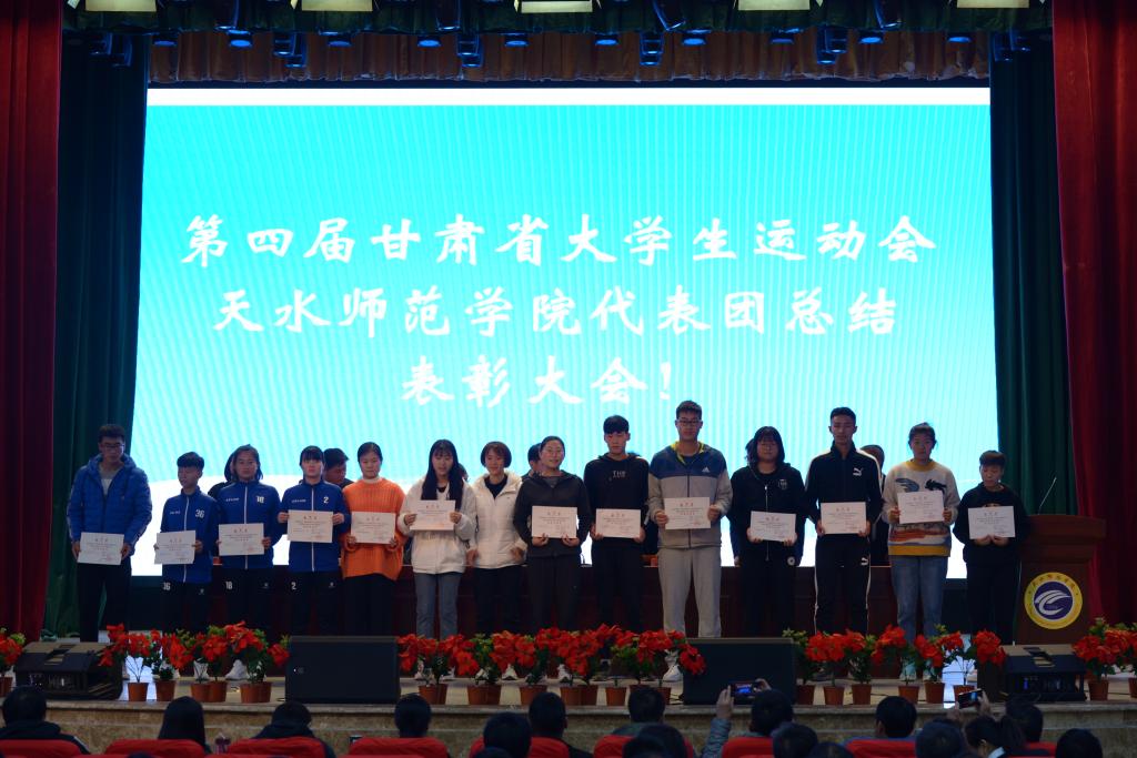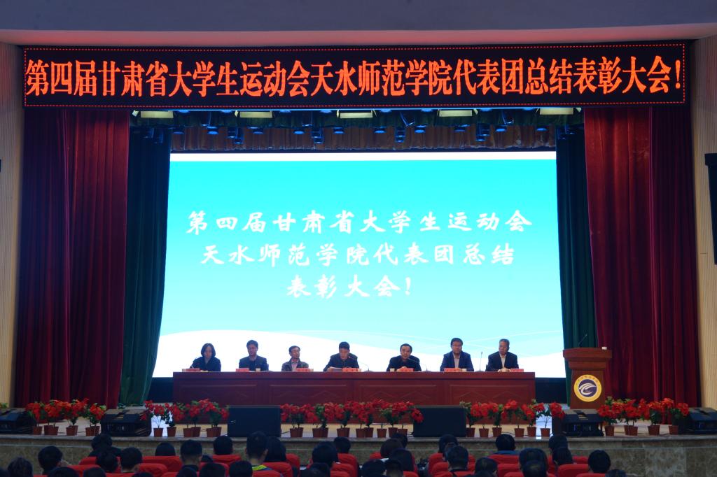 10月14日下午,第四届甘肃省大学生运动会天水师范学院代表团总结表彰大会在学校文化大礼堂召开。学校党委副书记、校长安涛出席会议并为受到表彰的单位和个人进行颁奖。校工会、学生处、团委、二级学院相关负责人,PA视讯集团网站全体师生和代表团全体运动员、教练员、工作人员共计800余人参加大会。大会由副校长、校体委主任安建平主持。