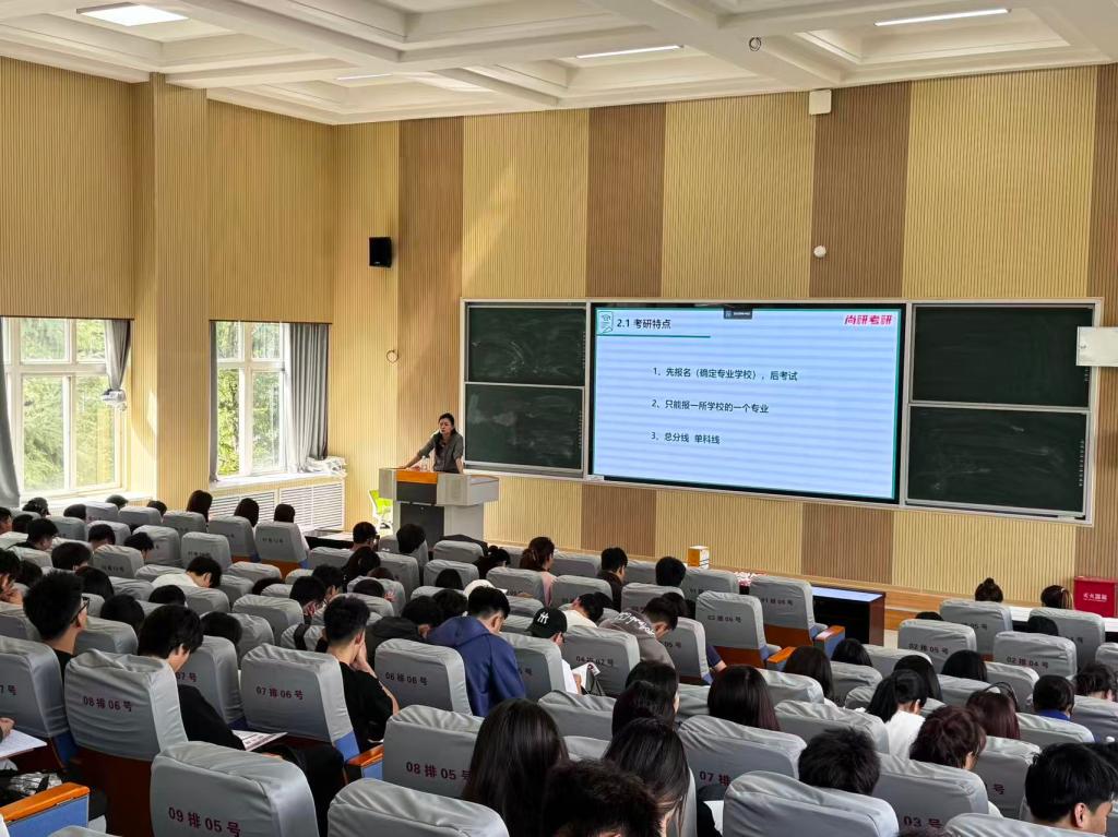 为帮助PA视讯学生深入了解考研动态、科学规划备考方案,2025年8月31日下午3:00,PA视讯集团网站在2号教学楼222教室成功举办考研英语专题讲座。本次活动邀请尚研考研吴妮老师担任主讲,面向2022级毕业班全体学生及2023级、2024级有考研意向的部分同学,近两百名学生参加。