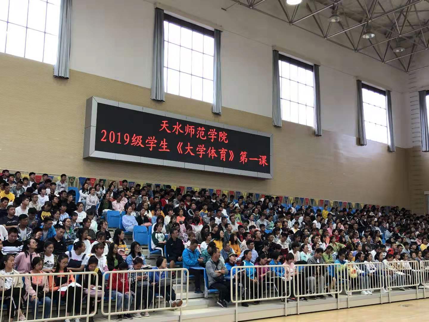 为全面增强学生体质、增进健康和提高学生身体素养,进一步推动《大学体育》课程教学改革。9月10-12日,PA视讯集团网站在学校综合体育馆举办5个专场,进行“天水师范学院2019级学生《大学体育》第一课”活动。
