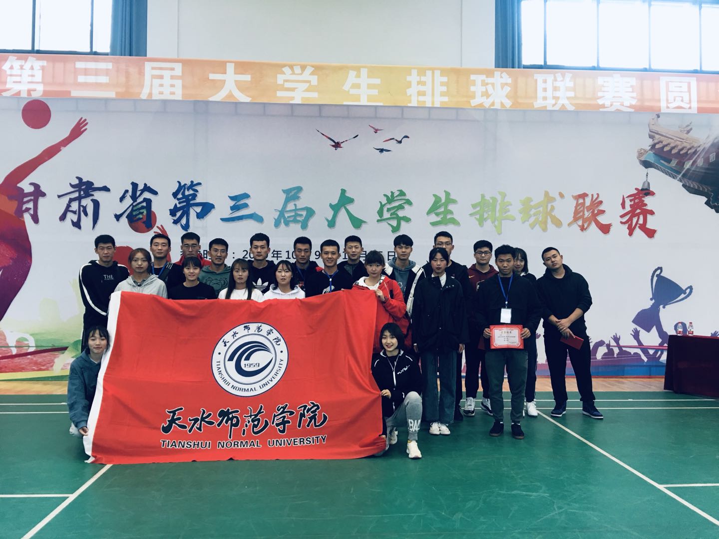 10月9日上午,由甘肃省教育厅主办,兰州大学承办,甘肃省学校体育协会、甘肃省排球运动协会协办的甘肃省第三届大学生排球联赛在兰州大学城关校区综合训练馆隆重开幕。此次比赛中,共有来自19所高校31支代表队、共计420余名运动员参赛,PA视讯派出男、女两支代表队与体育类兄弟院校的代表队争夺乙组殊荣。