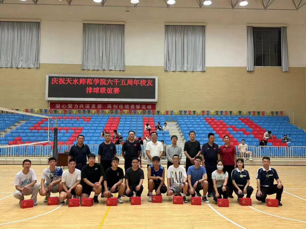 庆祝天水师范学院建校65周年校友排球联谊比赛在校友联队和在校生联队之间展开,活动旨在促进校友之间交流与合作,增强校友对母校的归属感,为学校65周年校庆活动造势增强热度。运动员以饱满的热情,全身心地投入到紧张的比赛当中,经过激烈的角逐,最终在校生联队以2:0战胜校友联队。