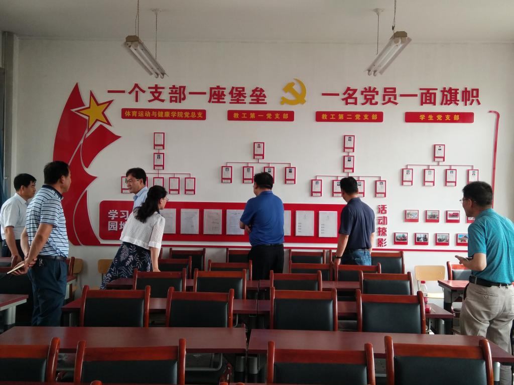 观摩党支部标准化建设主要通过现场问答、现场汇报、查阅相关党建材料等形式进行,学院副院长、教工第二党支部书记程晖重点围绕党建工作与教学科研高度融合、党建业务水平与思想认识同步提高、党建特色品牌活动与体育服务大众有机结合等方面作了现场汇报,并就如何加强党员思想政治教育和管理、如何发挥党员先锋模范作用、如何凝练特色党建活动等一一作了现场解答。