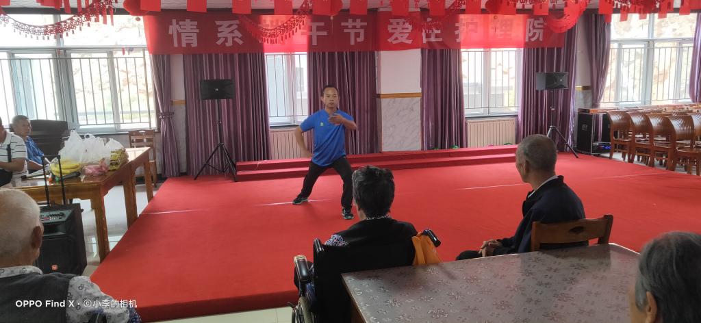 二、聂晶老师为老人们表演24式太极拳,以内外兼修、柔和、缓慢、轻灵、刚柔并济的拳术展示、表演,并讲解太极拳松沉柔顺、圆活畅通、用意不用力的运动特点。