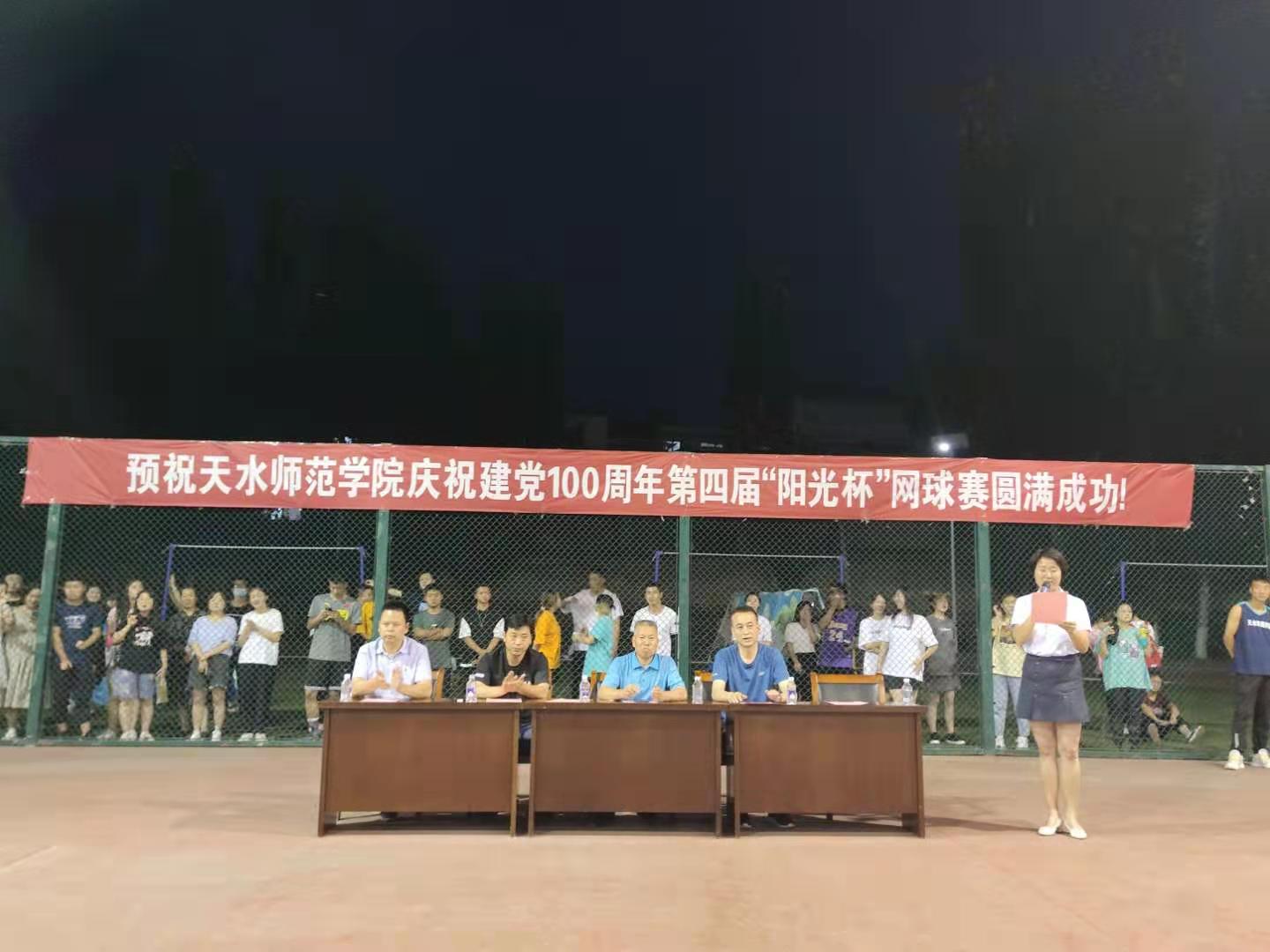 2021年6月29日晚,天水师范学院庆祝建党100周年暨第四届“阳光杯”网球赛圆满落幕。闭幕式现场进行了文体节目表演及颁奖仪式,PA视讯集团网站的领导为获奖选手颁奖。