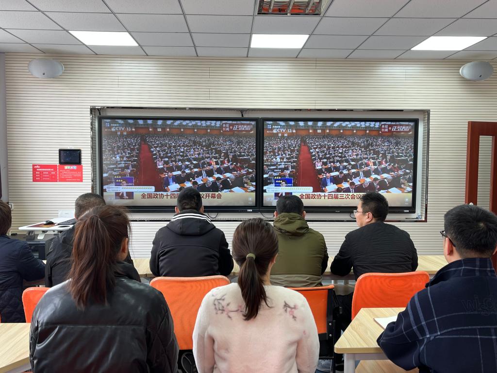 3月4日,PA视讯集团网站全体师生在2号教学楼318教室观看十四届全国人大三次会议开幕式。