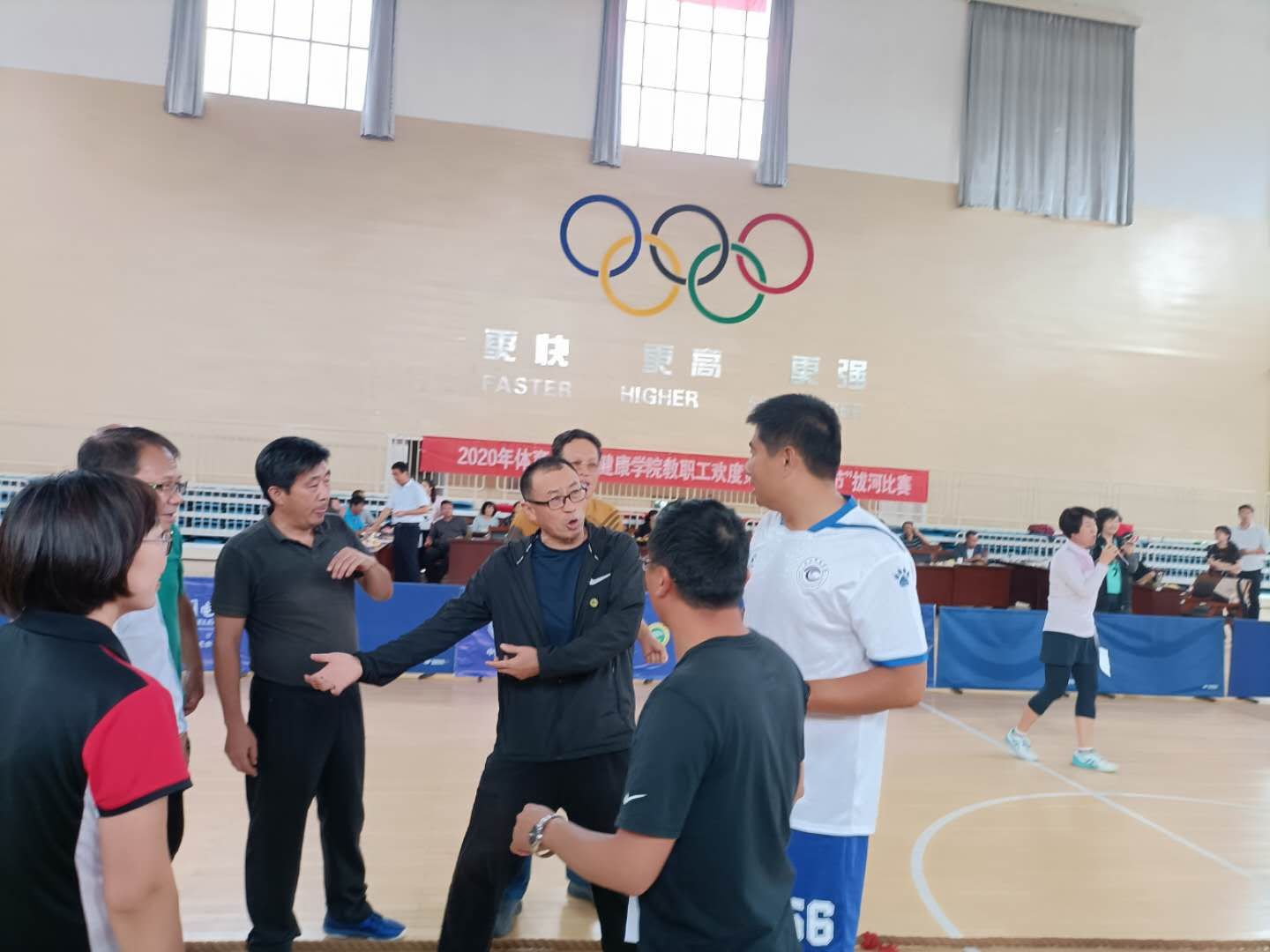 比赛开始前,学院党总支副书记吴建全代表学院向全体教职工致以节日问候和祝福,并作动员讲话,学院工会委员魏玉琴副教授就本次比赛的规则做了详细的说明。本次比赛以各系部将全体教职员工划分为四个队,这也是新一届领导班子到任以来优化学院机构的新调整,提高学院教学质量的新思路,调动学院教师积极性的新举措。