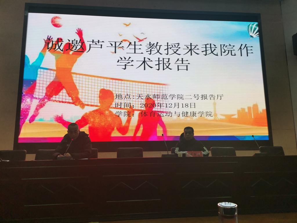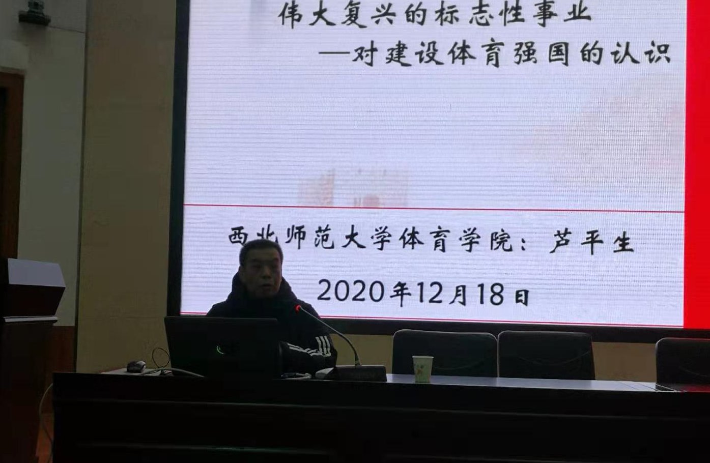 12月18日上午,西北师范大学芦平生教授应应PA视讯集团网站邀请,在学校二号报告厅作了题为《奋进新时代——让体育成为中华民族伟大复兴标志性事业》的学术报告。