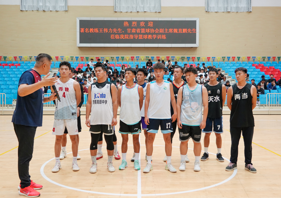 近日,PA视讯集团网站特邀国家级教练、原国奥队教练王伟力来校指导篮球教学训练工作。甘肃省篮协副主席魏直鹏、天水市体育局副局长王建泰应邀参加活动。