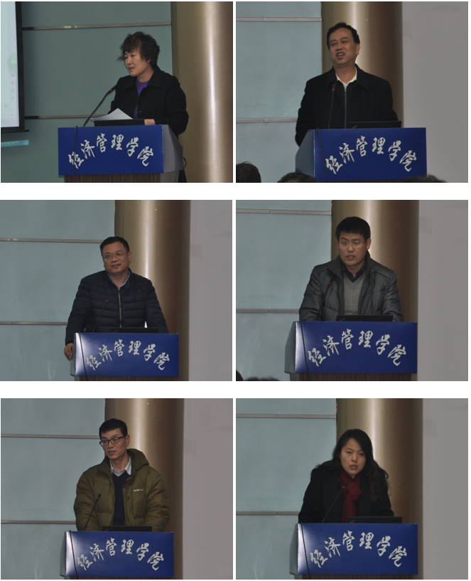 赵敏娟院长作《经管学院2015年工作报告》。她通报了学院2015年目标任务完成情况,并从师资队伍建设国际化水平不断提升、科学研究项目取得重大突破、研究成果稳定增加、人才培养质量稳步提高、就业工作取得较大进步、顺利通过MBA、MF办学评估、稳步推进“学院工作年”工作 、党建与管理工作凝心聚力等方面总结了学院2015年工作取得的成绩,认真分析了工作中存在的不足和问题,提出在新的一年里拟立足校院两级管理体制改革实施的要求,立足卓越创新人才培养和师资队伍建设为核心,进一步彰显办学特色与优势,推动学院教学科研事业全面发展。