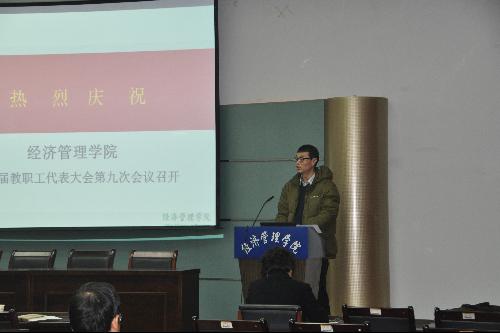1月6日下午,经管学院在603报告厅召开第二届教代会第九次会议,教代会代表32人参加会议,部门工会主席、副院长王云峰主持会议。