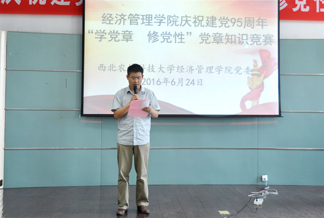为庆祝建党95周年,把“两学一做”学习教育落实做好。6月24日下午,经管学院于603会议室举办 “学党章,修党性”党章知识竞赛决赛。学院党委副书记温晓林、统战部秘书王家武应邀担任比赛评委。