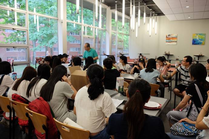 7月18日,密西根州立大学的研究生Dannel为访学团成员进行在美校生活注意事项的讲解,同学们认真倾听并作笔记。讲解结束后,由尹润生教授带领大家参观并熟悉密西根州立大学的校园。随后,大家来到教室开展访学交流会,会上依次进行自我介绍,并写下自己到美国的感想及计划。最后尹教授为同学们介绍了项目的行程安排,正式开启访学之旅。