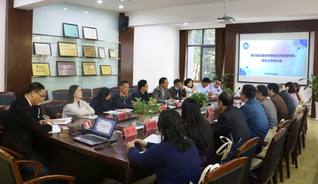 11月4日-5日,全国涉林高校经管学院学生工作联盟第四次学生工作研讨会在浙江农林大学召开。北京林业大学、东北林业大学、南京林业大学等7所涉林高校经管学院的副书记、辅导员出席研讨会,院党委副书记温晓林代表AWC万象城参加会议。