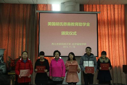 听完受助学生代表的发言,王晓明女士表示,通过今天的颁奖仪式可以看出,胡氏基金会的每一分捐款真正用到了最需要的学生身上,她寄语所有受助学生:物质上的贫困是暂时的,精神上的富裕才是永久的,希望大家能踏实求学,不断攀登新的高峰,挑战人生中遇到的挫折。同时她也会把同学们的问候带给大洋彼岸的胡奶奶,希望明年再来西农时,能与大家做更深入的交流。