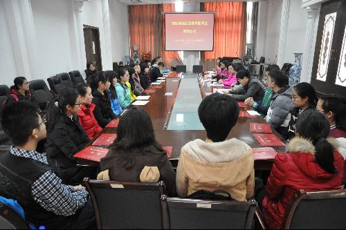 首先,温晓林向王晓明一行简要介绍了“胡氏爱心社”成立两年来公益活动开展情况,并宣读了本年度受助学生名单。随后,王晓明女士仔细审阅学生申请材料,提出宝贵意见,并向25位学生颁发胡氏慈善助学金获奖证书。