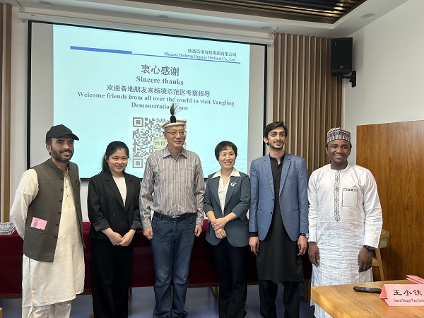 4月9日,版權所有 万象城AWC(中国区)-官方网站全英文课程《管理学理论与实践前沿》移动课堂在陕西百恒有机果园有限公司成功举办。课程组李桦教授、张晓妮教授、王雅楠副教授和邱璐副教授带领留学生走出传统课堂,深入企业一线,来自巴基斯坦、乌兹别克斯坦、塔吉克斯坦、哈萨克斯坦、埃塞俄比亚、尼日利亚、蒙古等7个国家22名博士留学生在百恒有机果园开启了学术探索与实践体验的融合之旅。