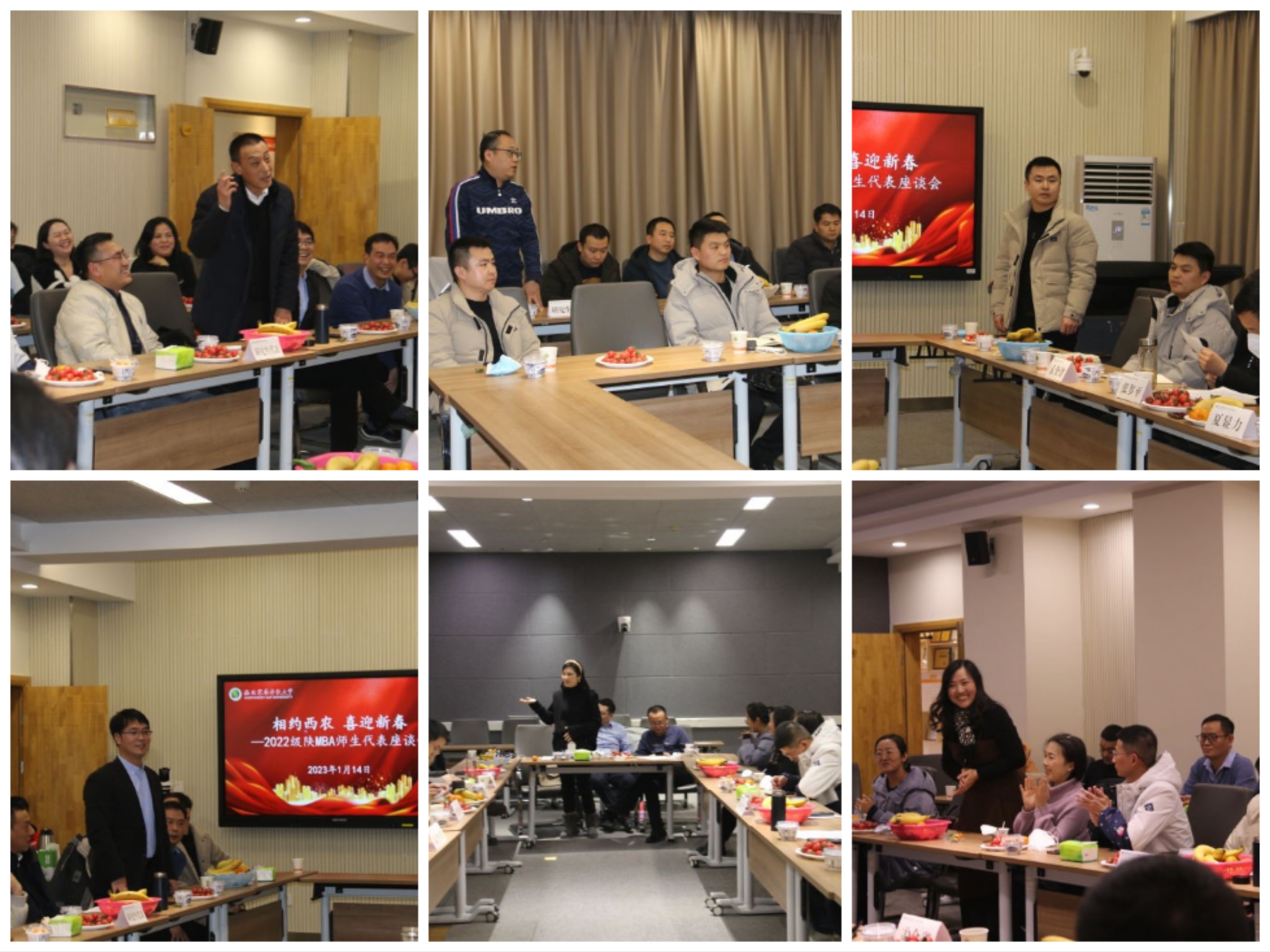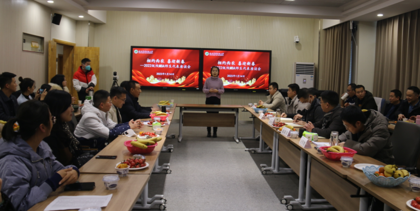 1月14日,农历腊月二十三,中国北方的传统小年,是喜庆团圆的日子。AWC万象城娱乐“相约西农 喜迎新春”—2022级陕MBA师生代表座谈会在学院C403会议室欢乐举行。学院党委书记张岁平,院长、MBA教育中心主任夏显力、中心常务副主任孟全省、副主任王军智和2022级陕MBA各班30多位同学代表参加座谈会。