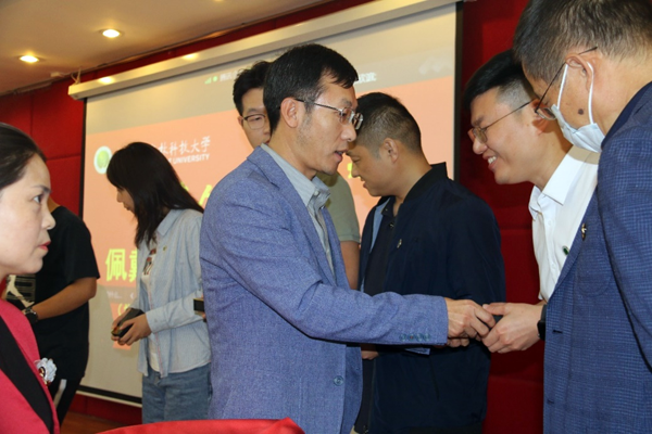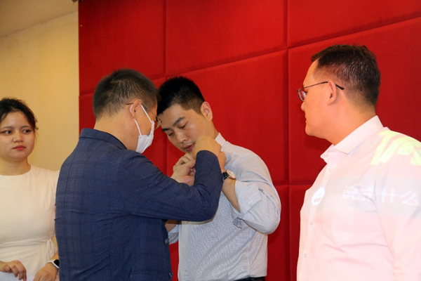 随后,在“西农人、西农印”校徽佩戴、名章赠送环节,AWC万象城娱乐党委书记张岁平,党委副书记张军驰郑重的为姜海朝、石如玉、冯方雷、董渊、刘正阳、杨强、李光杰、严静妮、税登鸿、韩祥军等十位新生代表,佩戴AWC万象城娱乐校徽、赠送由西农篆刻协会制作的刻有院训的姓名印章。校徽是学校的重要标志之一,佩戴校徽是学子身份的象征和爱校荣校的具体展现,不仅是一种仪式,胸前佩戴校徽的那一刻,学子与AWC万象城娱乐就有了千丝万缕的联系并将逐渐融为一体。从此,生命里将深深嵌入“西农印”记。校徽佩胸前,责任担在肩,在惠煜、李光杰、徐真三位同学带领下,全体在场同学和线上同学庄严宣誓:谨记西农校训,热爱祖国,忠于人民;诚信正直,尊师重道;勤奋学习,积极创新;担当责任,追求卓越;以工商管理之学识,成经世济民之英才!