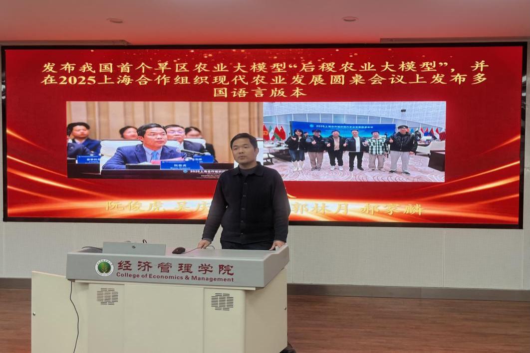 会上,阮俊虎教授总结团队年度成果。标志性成果方面,发布我国首个旱区农业大模型“后稷农业大模型”及多语言版本,6项咨政报告获国家级、省部级肯定性批示或采纳,获批陕西省中亚标准化研究点,西部农村发展研究中心获师德先进集体、中心党支部获省级样板党支部,获陕西省教学成果奖特等奖、校级教学成果奖特等奖与一等奖;项目立项上,团队成员斩获国家自然科学基金青年项目3项、“澳门青年学者计划”1项、国家资助博士后研究人员计划1项等,获国家留学基金管理委员会公派出国留学资格等;学术成果产出质效双优,在《管理科学学报》《系统工程理论与实践》《农业经济问题》《IEEE Transactions on Fuzzy Systems》《European Journal of Operational Research》等国内外高水平期刊发表多篇论文,获2项国家发明专利授权,发布陕西省地方标准《苹果仓储数字化管理规范》,出版《智慧农业技术及其典型应用场景》等3部著作;社会服务与竞赛成绩亮眼,1个案例入选全球减贫最佳案例,获全国人工智能应用创新大赛、“挑战杯”等多项国家级、省级竞赛奖项,多个电商策划项目获行业赛事奖项;人才培养成效显著,2人获博士学位,1人赴海外深造,多人获国家奖学金、优秀大学生及优秀毕业论文等荣誉;学术交流与团队建设同步推进,邀请多位专家开展前沿学术报告。