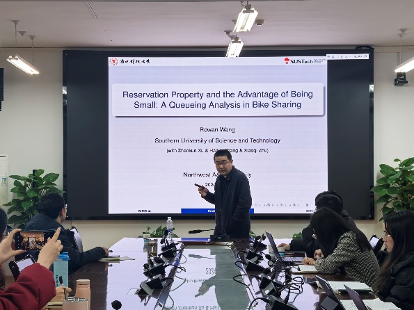 2024年12月19日下午,版權所有 万象城AWC(中国区)-官方网站西部农村发展研究中心在C304会议室成功举办了“预约特性与小规模优势:共享单车的排队分析”主题的学术研讨会。本次会议主持人为孙自来老师,在对王宇教授简单介绍后,本次研讨会正式开始。