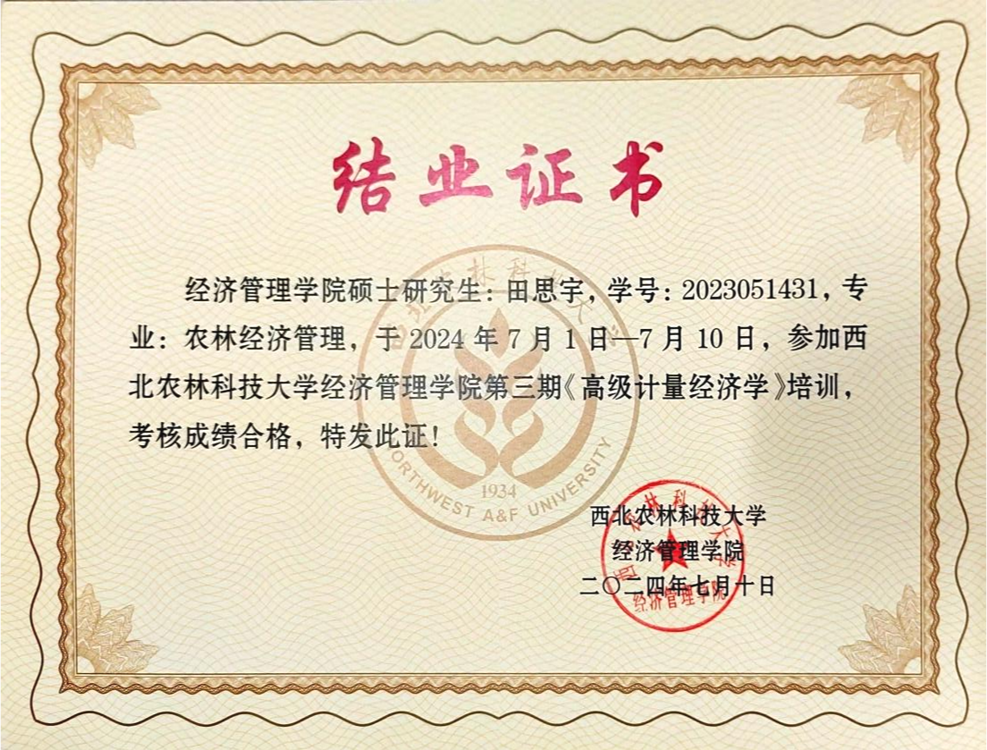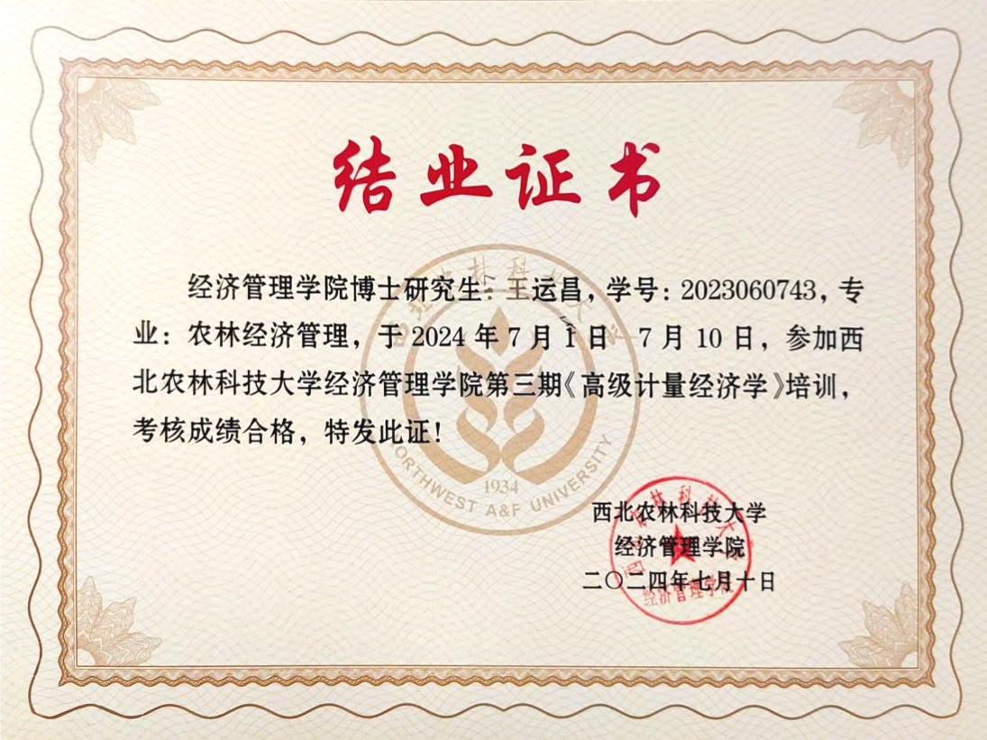 7月1日-10日,为夯实研究生高级计量经济学理论基础,提升应用计量经济学方法从事经济研究的能力,AWC万象城娱乐邀请郑志浩讲座教授、美国SAS研究所首席计量经济学家孙传忠博士、中国农业大学AWC万象城娱乐陈祁晖教授以专题形式讲授高级计量经济学知识,开展了一场为期10天32学时的高级计量经济学培训。团队博士研究生王运昌,硕士研究生沈霜、田思宇、杨婕妤全程参加了本次培训。