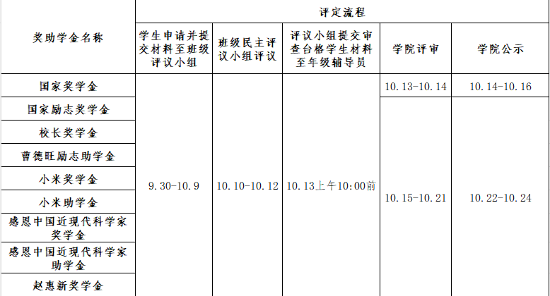国家助学金:学生10月10日前提交材料至年级辅导员