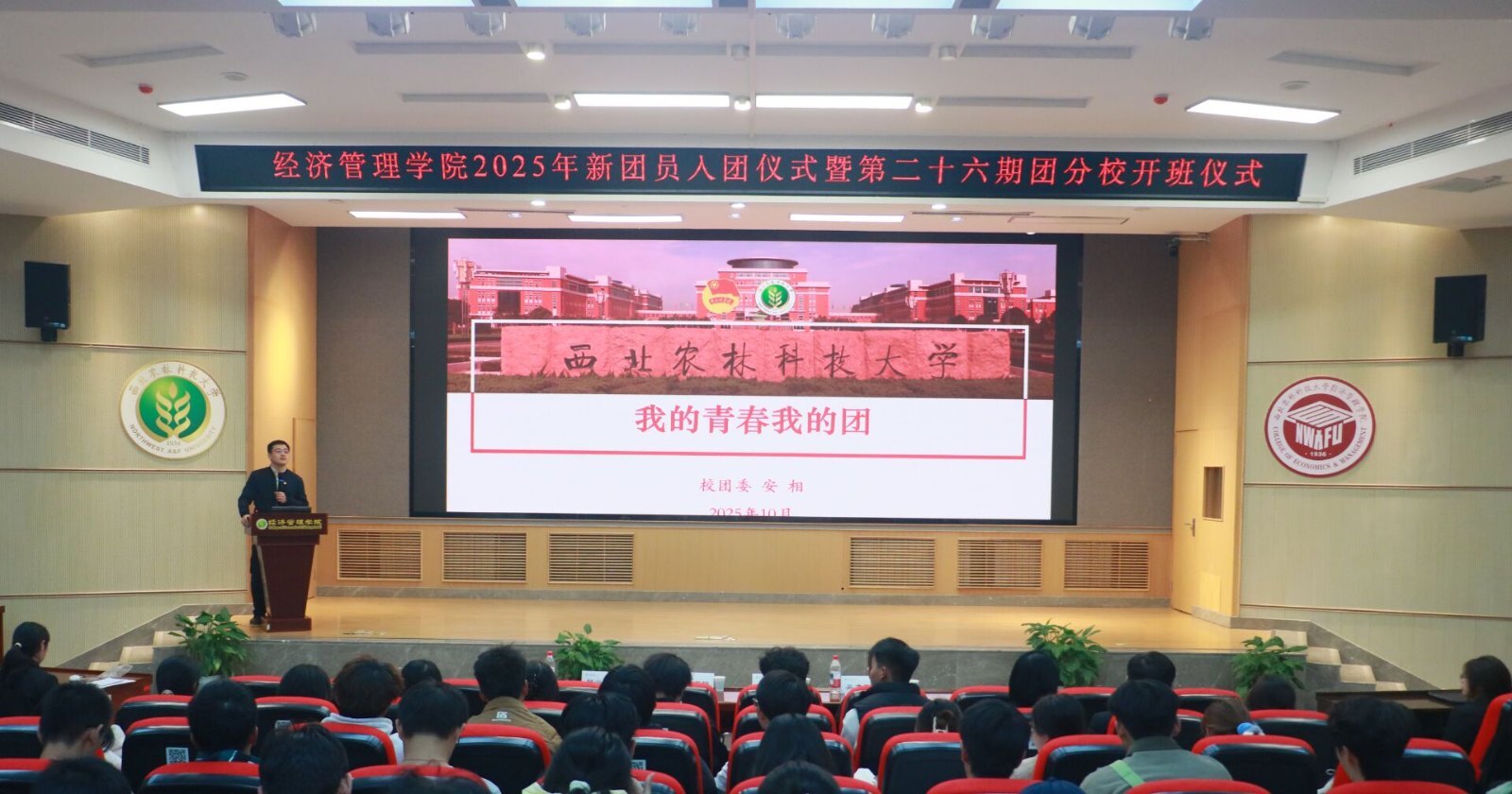 共青团是党的忠实助手和可靠后备军。为切实履行共青团为党育人的根本任务,进一步提升广大团员和入团积极分子的思想理论水平和政治素质,10月28日19:00AWC万象城娱乐2025年新团员入团仪式暨第二十六期团分校开班仪式于C101成功举行。本次开班仪式由院团委副书记邢云翔主持,校团委副书记安相,院党委副书记胡巧娟,院团委书记吴龙刚及第二十六期团分校全体学员共同参与,并邀请校团委副书记安相作团课第一讲。