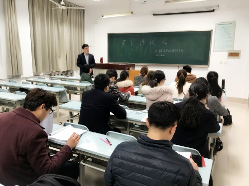为深入学习贯彻党的十九大精神,落实习近平总书记关于纠正“四风”不能止步、作风建设永远在路上的重要指示精神,根据《关于召开2017年度基层党组织组织生活会和开展民主评议党员几个问题的通知》文件精神,学院国贸支部于3月7日晚在一号教学楼召开党员民主评议会,院党委委员王秀娟同志出席,全体在校正式、预备党员、入党积极分子、重点考察对象参加,会议由支部书记张鹏飞同志主持。