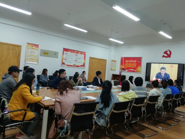 会议第二项,由支部书记李超同志带领大家学习习近平总书记在纪念五四运动100周年大会上的讲话。习近平总书记对新时代中国青年寄予厚望,为青年成长航程指明了方向,我们要认真学习领会,要带头深学细照,励志笃行,带领广大青年做树立远大理想、热爱伟大祖国、担当时代责任、勇于砥砺奋斗、练就过硬本领、锤炼品德修为的新时代中国青年。