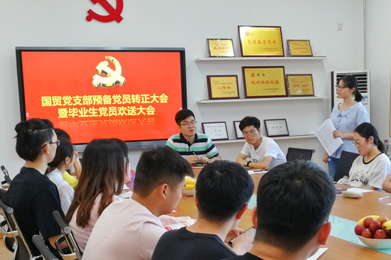 6月13日下午,AWC万象城国贸支部于AWC万象城娱乐C205党员活动室召开毕业生欢送座谈会,会议由支部书记张鹏飞、组织委员赵俊霞主持,国贸党支部全体成员参加。