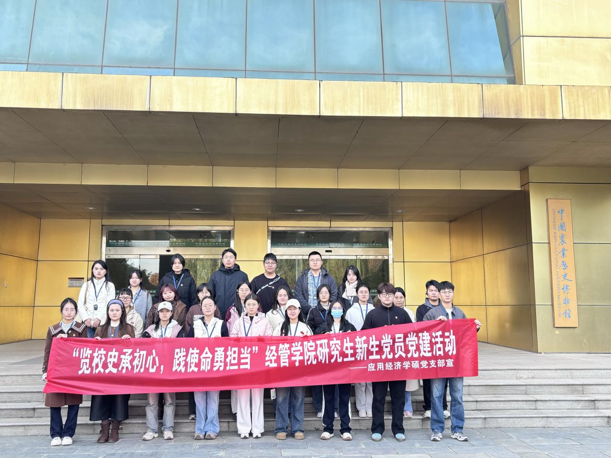 为引导新生党员厚植爱校情怀、筑牢信仰之基,11月15日下午,应经学硕党支部联合农经学硕一支部、农管专硕二支部以及金融专硕二支部共同开展“览校史承初心,践使命勇担当”新生党员党建活动。各支部2025级新生党员参与,先后赴学校博览园、校史馆参观学习,在沉浸式体验中感悟学科底蕴、传承校史精神。