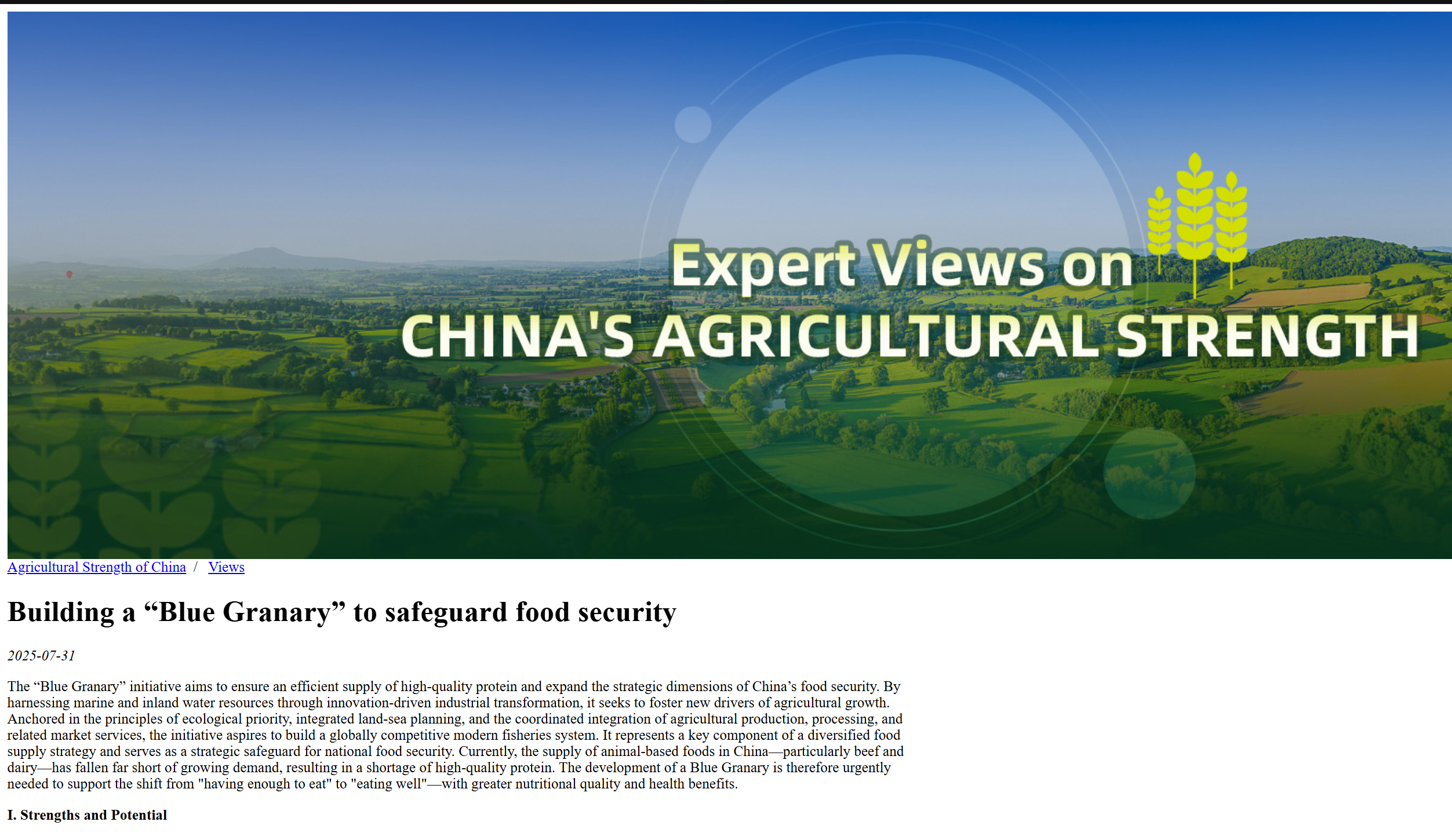 任彦军教授在China Daily上指出:建设“蓝色粮仓”,保障粮食安全