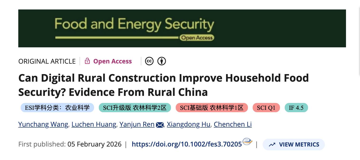 团队博士生王运昌在《Food and Energy Security》发表最新成...