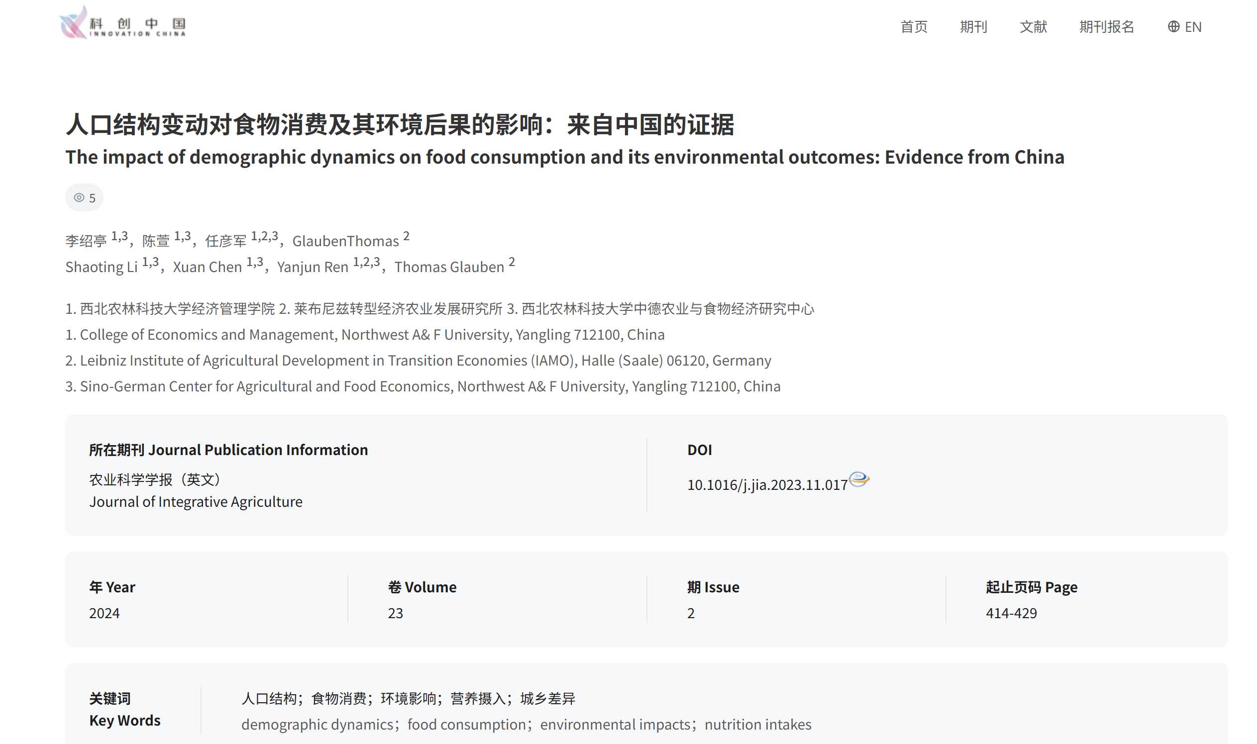 任彦军教授团队在《农业技术经济》发表最新研究成果