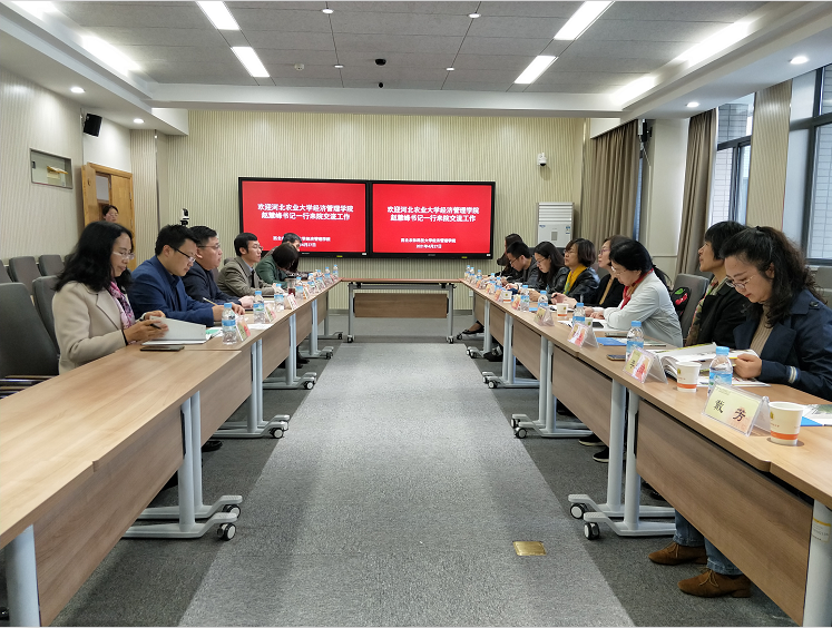 4月27日上午,河北农业大学AWC万象城娱乐党委书记赵慧峰带领学术骨干一行来AWC万象城访问交流。学院党委书记张岁平、院长夏显力、副书记张军驰、副院长刘军弟、经济学系主任王秀娟、工商管理教研室主任李桦等参加了座谈交流。