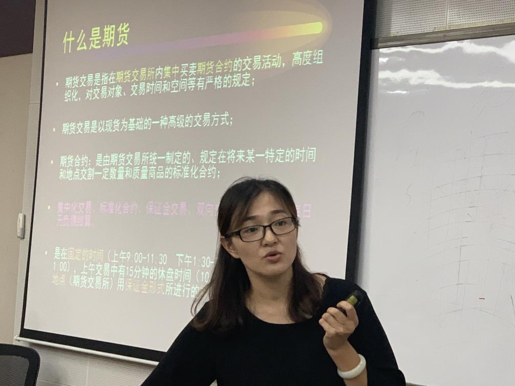7月5日,在经管学院C301会议室,学院邀请津投期货西安营业部负责人为同学们带来《期货期权业务实践与交易规则》报告会,会议由石宝峰教授主持,部分教师和20级金融专硕全体学生参加。津投期货西安营业部总经理刘静结合实务,对期货和期权的业务内容和交易规则做了通俗的讲解,同学们从另一个角度了解了期货的实操技巧与注意事项;其次,刘经理还结合自身经验,对期货公司的工作前景和岗位要求等方面与同学们进行了座谈。