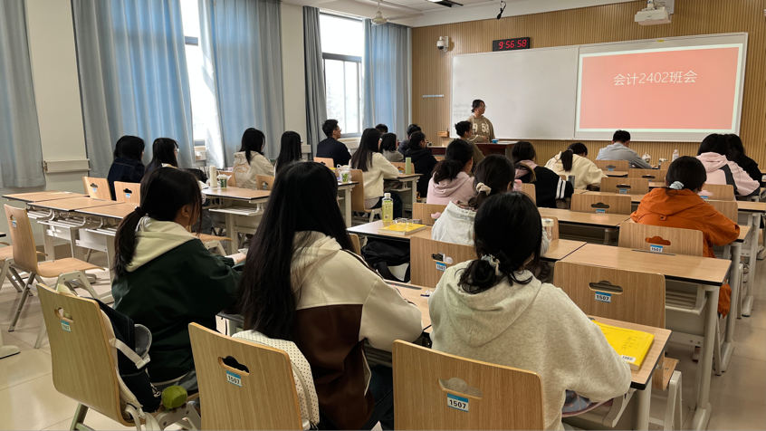 本次班会不仅夯实了班级学风建设成果,更帮助同学们明确了发展方向、强化了安全意识。整场班会氛围融洽、互动充分,老师和同学们在交流中增进了彼此的了解,凝聚了班级向心力,为班级后续发展与同学们的成长成才提供了有力保障。未来,会计2402班将持续推进班级建设,助力每位同学在学业与职业道路上稳步前行。