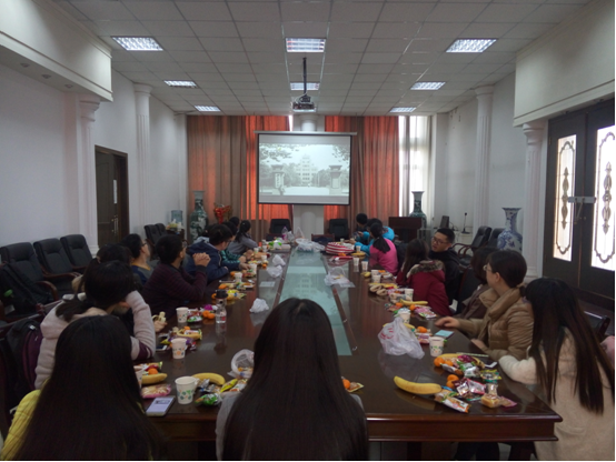 一年一度的国贸党支部的新年茶话会于2016年1月4日与经管院办601会议室召开,国贸支部的党员们欢聚一堂,辞旧迎新。支部还准备了水果小吃,大家边吃边聊,各抒己见,畅所欲言,既总结过去的一年的工作,又对新的一年进行展望。