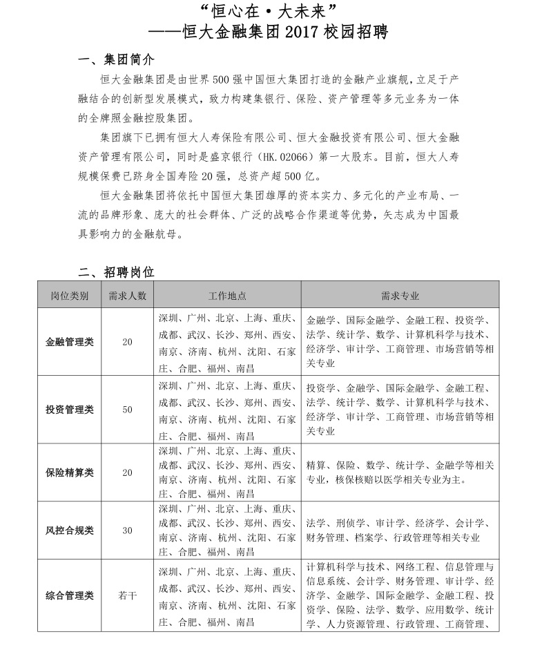 » 恒大金融集团招聘简章